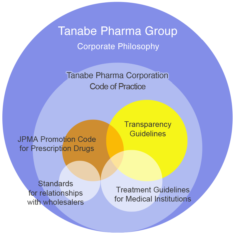 The Japan Pharmaceutical Manufacturers Association (JPMA), of which Tanabe Pharma is a member company, put the JPMA Code of Practice into effect in 2013. This establishes behavioral standards that must be observed by the executives and employees of the member companies in their interactions with researchers, healthcare professionals, patient organizations, wholesalers, etc. In response, the Company established and put into effect the Tanabe Pharma Corporation Code of Practice (Japanese language only). All executives and employees of the Company and Group companies in Japan are required to follow this code not only in promotion endeavors designed for healthcare professionals, medical institutions, and others, but also in all other corporate activities, including testing and R&D, information provision activities for persons other than healthcare professionals, cooperation with patient organizations, and relationships with wholesalers. Overseas Group companies comply with the codes of each country based on the International Federation of Pharmaceutical Manufacturers and Associations’ Code of Practice (IFPMA Code).