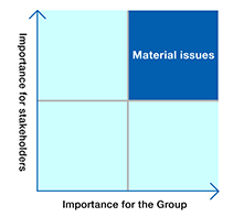 For the social issues identified in step 1, their importance for the Group was evaluated with consideration for such factors as the Group’s values and major policies, strategies and specific activity objectives, and risk-related information.