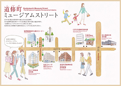 As an everyday initiative, in cooperation with other Doshomachi exhibition facilities related to pharmaceuticals, we are rolling out a publicity activity under the name Doshomachi Museum Street (Japanese language only). The community will work to provide information to encourage large numbers of people to visit Doshomachi, which is the birthplace of Japan’s pharmaceutical industry.