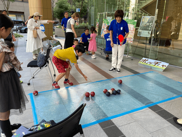 On the day of the event, we arranged for some entertainment for local residents to take place after priests had chanted some Sutras, and prayed for our children to grow up strong and healthy. The children in attendance received Tanamin fans and gifts of sweets, and enjoyed games such as ring toss, yo-yo fishing, and boccia. There were a wide variety of activities on offer, including photo opportunities with Tanamin and bubble blowing with the staff. Boccia in particular caused quite a stir, with children who had tried the game in elementary school defeating the adults.