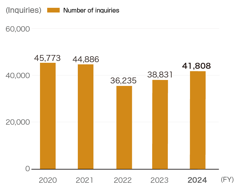 We are working each day to improve our skills so that we identify the true needs behind the inquiries and respond in a way that increases the satisfaction of the people who call. The Medical Information Center receives more than 42,000 inquiries (FY2024 results) a year on a wide range of subjects. It also provides information on the appropriate use of the Company’s products while utilizing basic pharmaceutical information and the in-house Q&A. Valuable information that the center receives from customers about safety, such as adverse effects of drugs, and quality is shared internally. In this way, the center helps improve products, enhance reliability, and discover future new drugs.