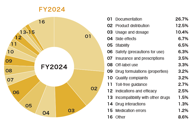The Company has established its own Medical Information Center to respond directly to inquiries from healthcare professionals (physicians, pharmacists, wholesalers, and others) and patients. Separate from the Center, we have opened a point of contact for patients and their families to make it easy for them to obtain advice, and are operating our Medication Information for Patients website, which offers patients and their families direct access to information on our ethical drugs.