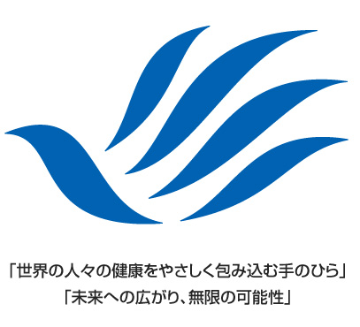 - コーポレートカラーのブルーは、製薬会社としての「知性」「技術力」「倫理観」を意味し、さらに、世界の人々に役立つ医薬品の創製に挑戦する「積極性」を表しています。