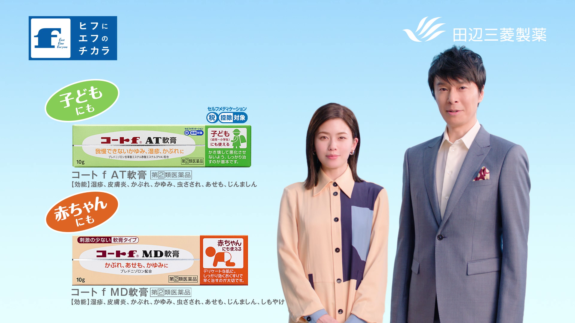 三菱ケミカルグループの田辺三菱製薬株式会社(本社:大阪市中央区、代表取締役:辻村明広)は、5月12日(金)から、湿疹・皮膚炎治療薬「フルコート®f」「コートf®」シリーズ(OTC医薬品:指定第2類医薬品)の新テレビCMの放映を全国で開始します。新CMには、2017年からイメージキャラクターをつとめていただいている長谷川博己さんに加え、今回新たに小芝風花さんを起用しました。