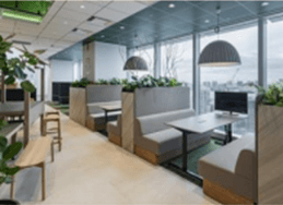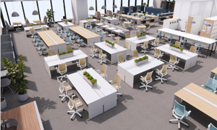 - コラボレーション・カフェエリア:リラックスした雰囲気の中、従業員同士の積極的なコミュニケーションや偶発的な接触を誘発し、イノベーション/エンゲージメントや出社メリットを生み出す場を創出