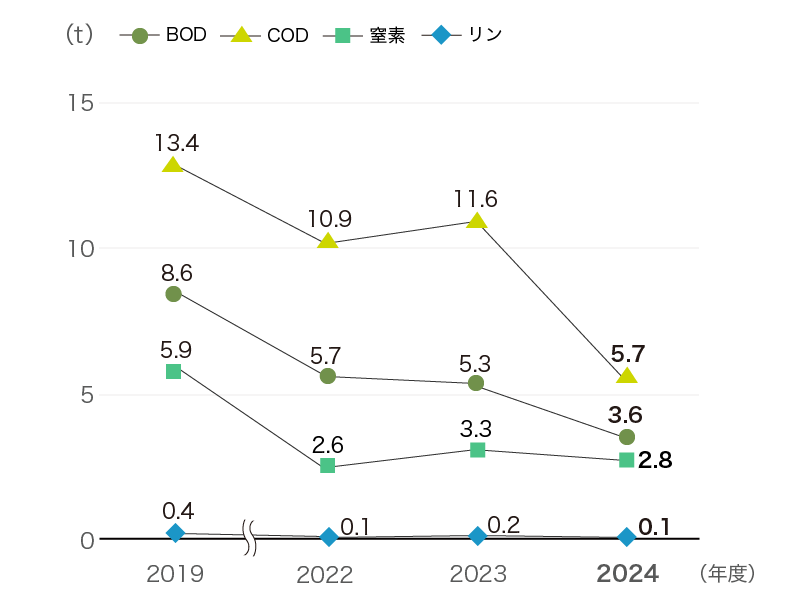 2024年度の国内におけるCOD量は5.7tで、2019年度比で58%削減しています。