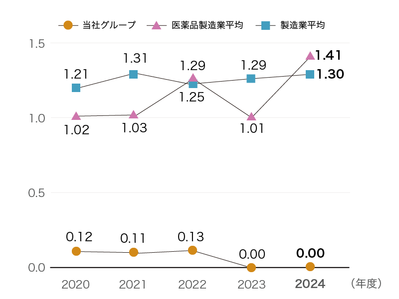 当社グループは4月~翌年3月、医薬品製造業平均および製造業平均は1月~12月