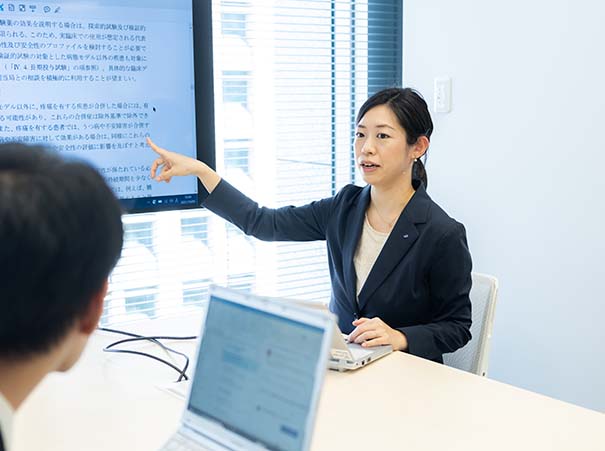 After starting my career, I experienced clinical trials for hepatitis C, age-related macular degeneration, and diabetes for three and a half year. The responsibility of CRA is to check that the trials are conducted as planned at medical institutions. There are various tasks such as negotiation with the doctors and collecting trial data to conduct trial without issues. This is one of the closest job to the medical field in a pharmaceutical company.